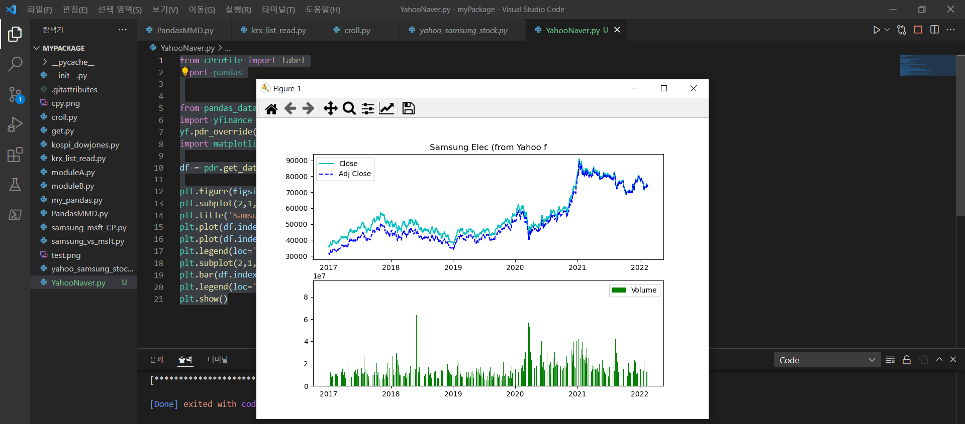 오류가 없으니 다음 진도에도 저는 야후 파이낸스를 이어서 사용하겠습니다.