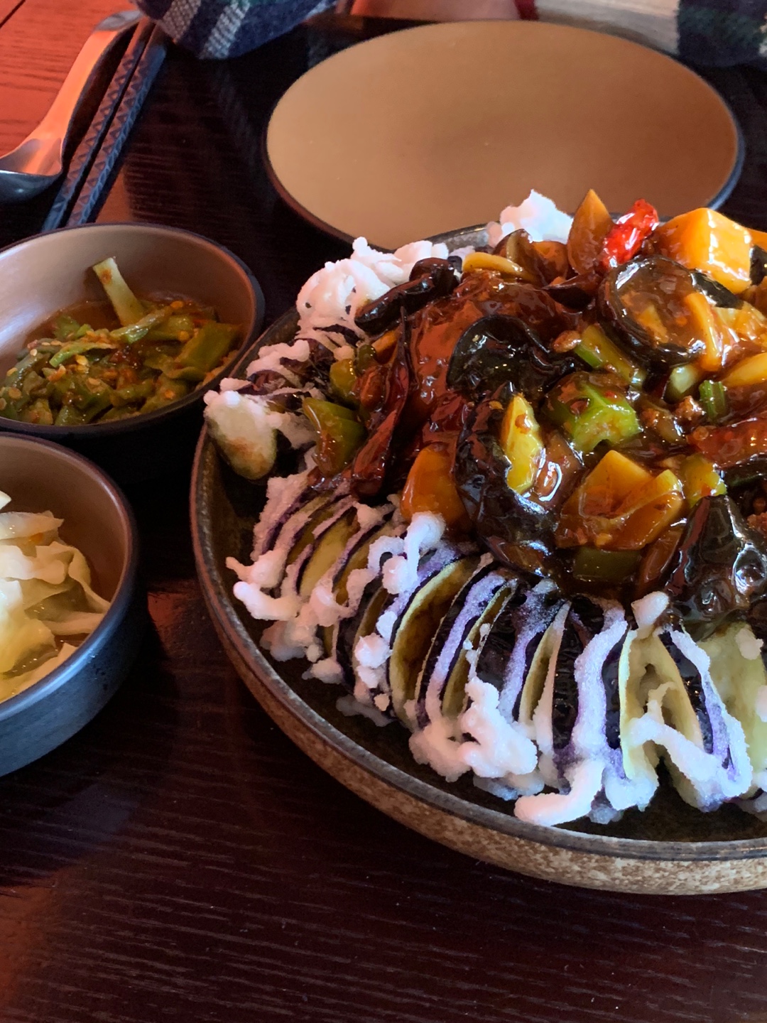 튀김 옷을 입힌 가지가 바삭한 맛을 더하여, 부드럽기만 한 완자의 부족한점을 보완해주었다.