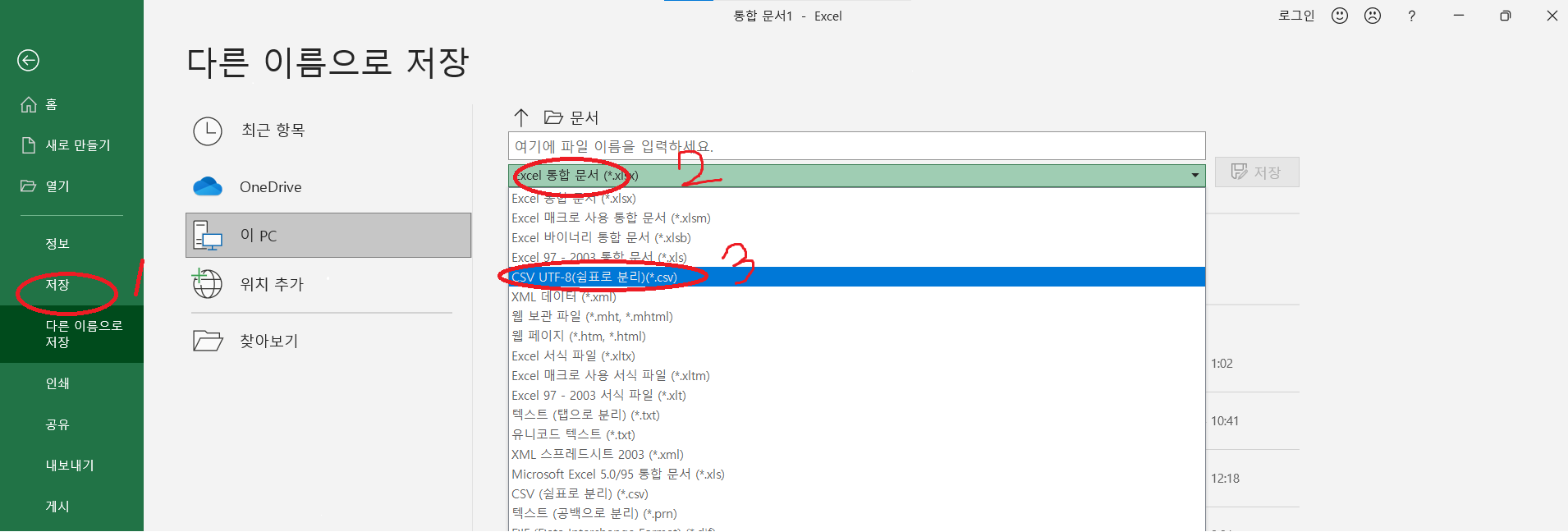 파일 이름 뒤에 확장자명을 csv로 지으면 되는데,
