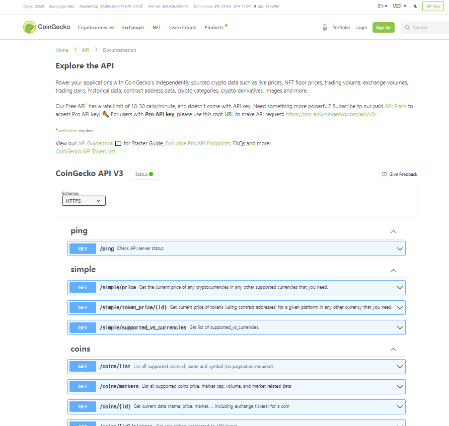 API키 없이 암호화폐 데이터를 받아올 수 있는 CoinCecko API를 이용해봅시다.